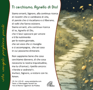 Vangelo Giovanni 1,35-42 In quel tempo Giovanni stava con due dei suoi discepoli e, fissando [...]