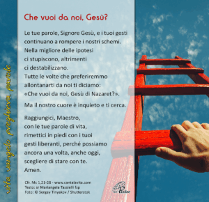 Vangelo Marco 1,21-28 In quel tempo, Gesù, entrato di sabato nella sinagoga, [a Cafàrnao,] insegnava. [...]