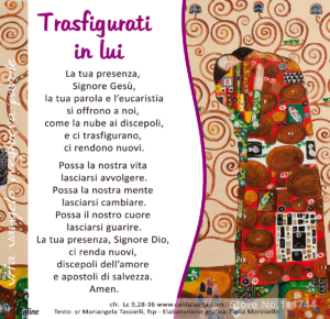 Vangelo Luca 9,28b-36 In quel tempo, Gesù prese con sé Pietro, Giovanni e Giacomo e [...]